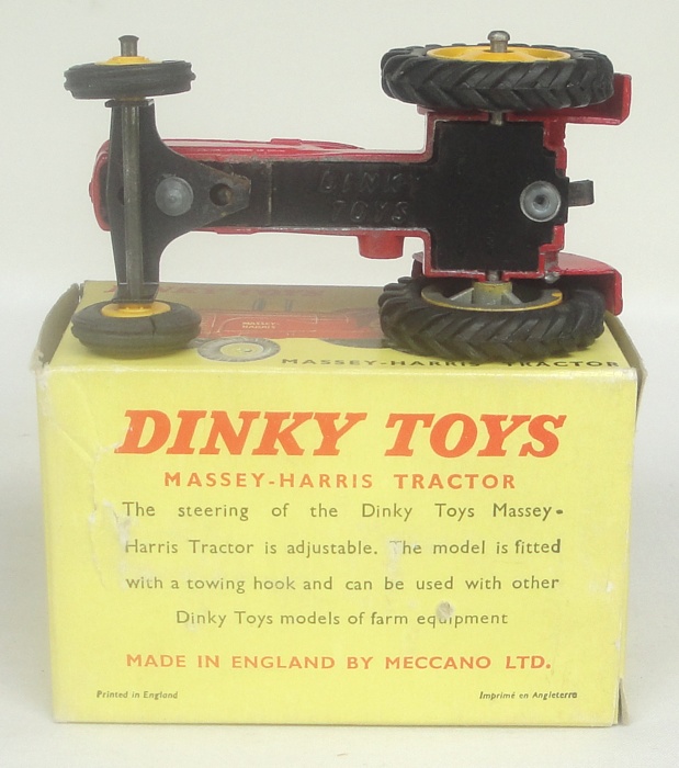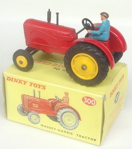 Dinky 300 Massey-Harris Tractor. Very near mint/boxed. Scarce late transition issue with plastic wheels and driver. Correct without 'Massey-Harris' lettering.