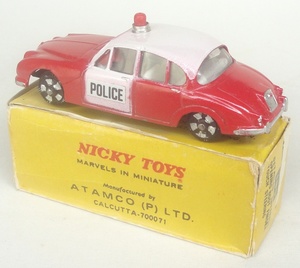 Nicky (Dinky) 195 Jaguar 3.4 MK II 'POLICE'. Scarce issue. Non-metallic red and white. Near mint/boxed (wear). From 'The Heart of England' Collection.