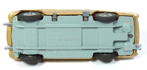 The car is fully functioning, complete with both figures. Suspension is present but rather soft on wire wheels. Original tyres are well-shaped. This Aston Martin DB5 model has a lustrous intense, deep toffee-gold finish – an especially attractive example, since often the Aston comes in a variety of shades. Note the light tan ejector roof interior too, coupled with a bright red interior. A rare version.