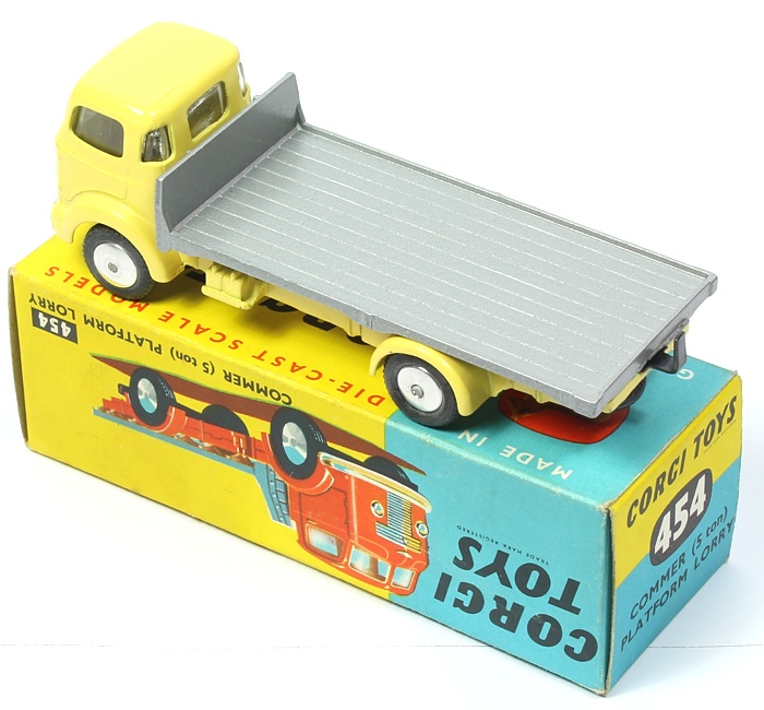 Corgi 454 Commer Platform Lorry. Very, very near mint/boxed. Lemon & silver version. Very fresh blue and yellow picture box! From 'The Monty Calme' Corgi Collection.