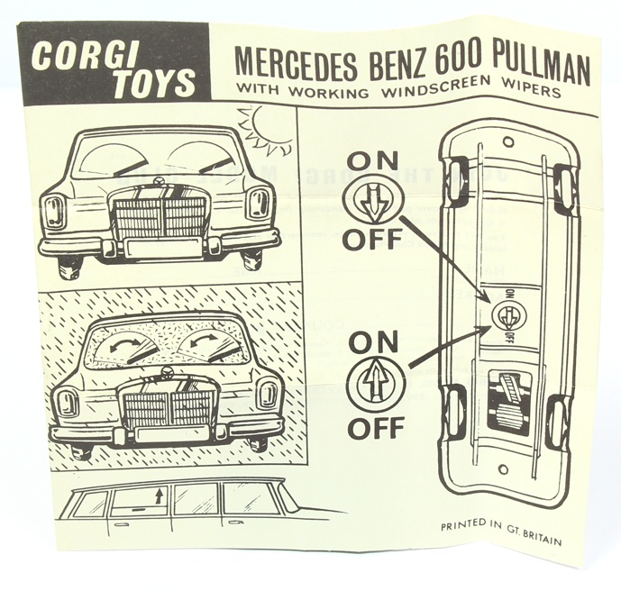 Corgi 247 Mercedes Benz 600 Pullman. Very near mint/boxed. Metallic ruby-red version. Complete with intact bonnet emblem and Instruction Leaflet. From 'The New European' Collection.