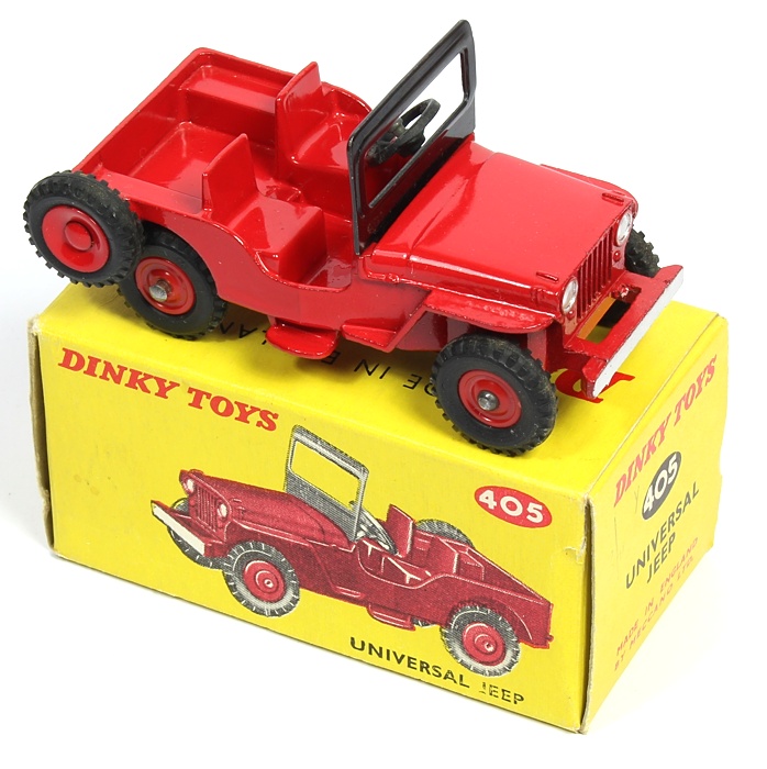 Dinky 405 Universal Jeep. Scarce late issue in red, red plastic wheels. Very near mint/boxed. From The Reference Collection.