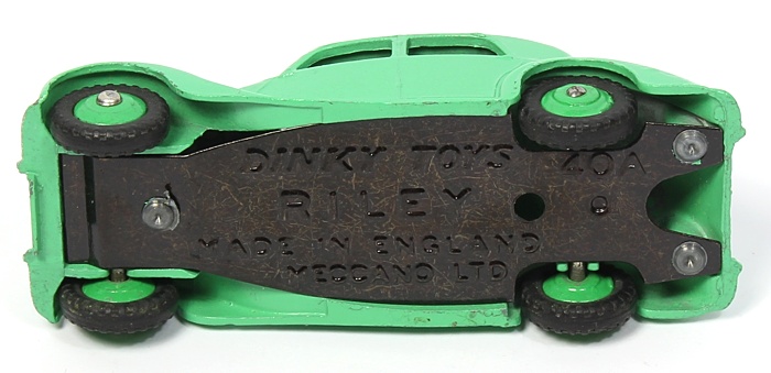 Dinky 158 Riley Saloon. Green issue, with treaded tyres. Very near mint/boxed. With a crisp, bright box. From The Reference Collection.