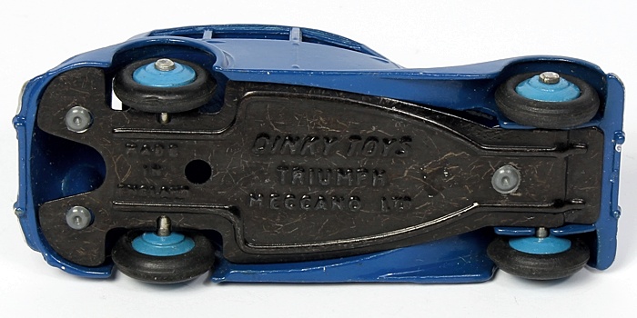 Dinky 151 Triumph 1800 Saloon. Rare DARK BLUE ISSUE WITH MID-BLUE WHEELS. Very near mint/boxed (wear). From The Berlin Collection.