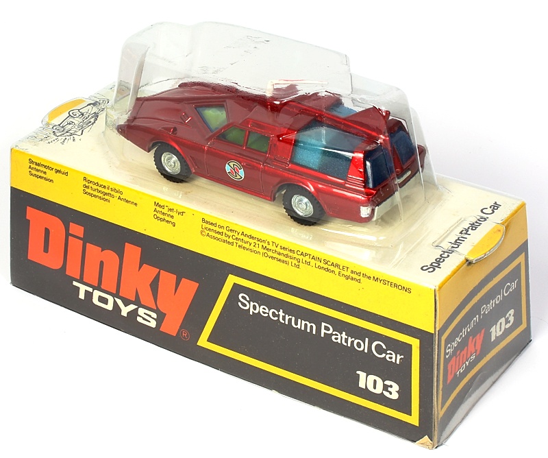 Dinky 103 Spectrum Patrol Car. Very near mint/boxed. In rare tall card box with bubble lid - a first for QDT. From The Monty Calme Collection.
