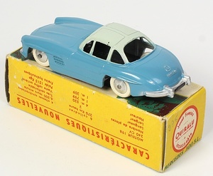 Quiralu Jouets Francais Mercedes 300 SL. Mid-blue & pale grey issue. Very near mint/boxed, with leaflet. Scarce. From The 25 Year Collection.
