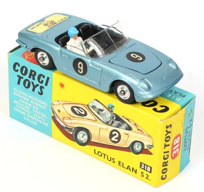 Corgi 318 Lotus Elan S2. Very near mint/boxed, with packing card. From The Monty Calme Collection.