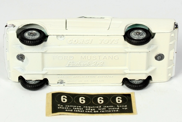 Corgi 325 Ford Mustang Fastback 2 + 2 Competition Model. DETAILED CAST WHEELS issue. Very near mint/boxed, with unapplied racing numbers. .