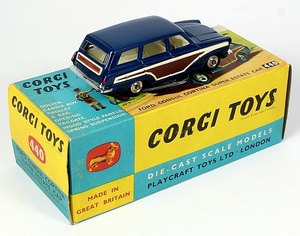 Corgi 440 Ford Consul Super Estate Car Golfing Set. Excellent (peeling chrome)/boxed. Scarce with packing & additional 'Opening Tailgate' sign. Shop-fresh card plinth. From The City Collection.