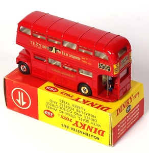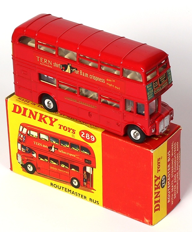 Dinky 289 Routemaster Bus 289 "Tern Shirts". Near mint plus/boxed. Scarce find in the export box with 'Dealer Strip'.
