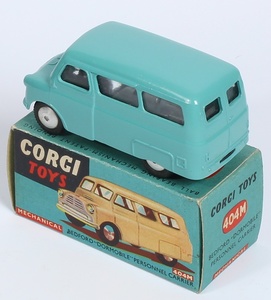 Corgi 404M Bedford "Dormobile" Personnel Carrier. Very, very near mint/boxed. Turquoise version. From a small cache of period unsold shop stock.