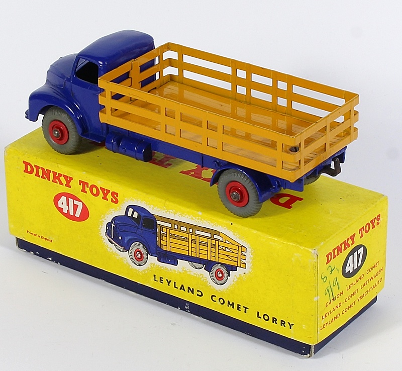 Dinky 417 Leyland Comet Lorry. Near mint plus/boxed. Violet blue & deep yellow issue. From The Central Netherlands Collection.