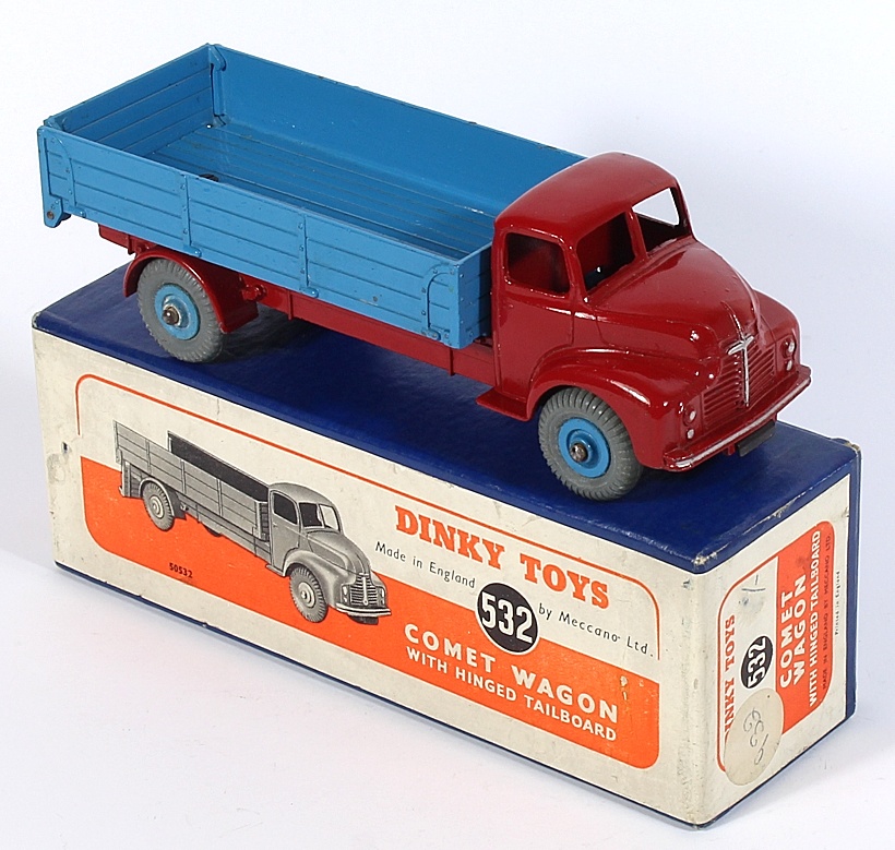 Dinky 532 Comet Wagon with Hinged Tailboard. Near mint/boxed. Very scarce issue in cherry red and mid-blue. First we have offered for sale in a long time. From The Central Netherlands Collection.
