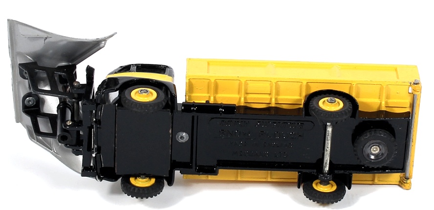 Harder to find version, this snow plough has a vivid black and yellow finish and a silver dozer blade, light blue light on the roof. Bright colours throughout