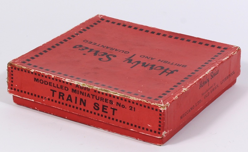 Dinky Gift Set 21 (Modelled MIniatures) Hornby Train Set. Excellent plus-near mint plus/boxed. Rare Pre-War set in plain red card box. From a prestigious U.K. Collection.