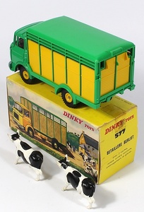 French Dinky 577 Berliet Livestock Truck with both original cows. Very near mint/boxed, with serrated strip attached. From The BST Collection.
