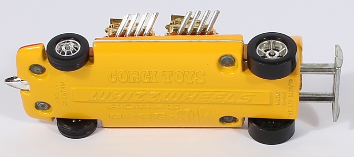 This model was made between 1972-74 and has a distinctive red merging into yellow body and no less than 4 gold-finished V8 engines.