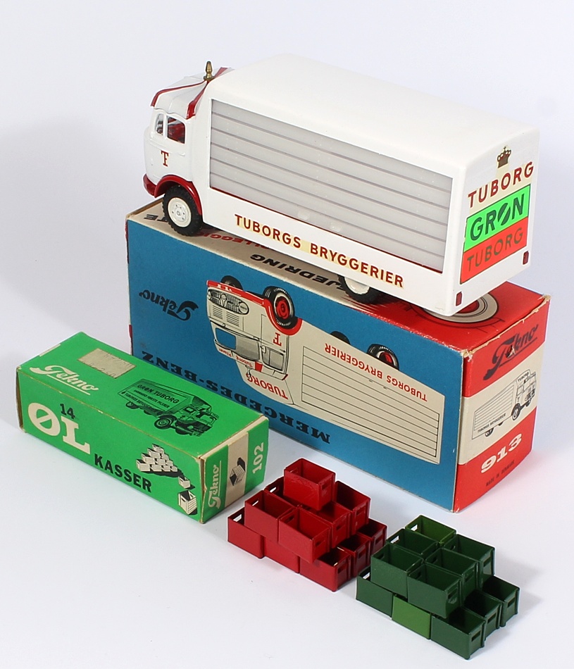 Tekno 913 Mercedes-Benz Delivery Truck 'TUBORG'. Very near mint /boxed (repair), with Tekno 102 Accessory Box of Crates (31). From The Berlin Collection.