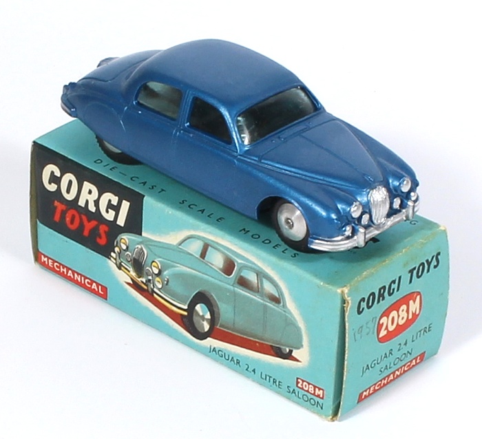 Corgi 208M Jaguar 2.4 Litre Saloon. Metallic blue. Near mint plus/boxed. From The 25 Year Collection.