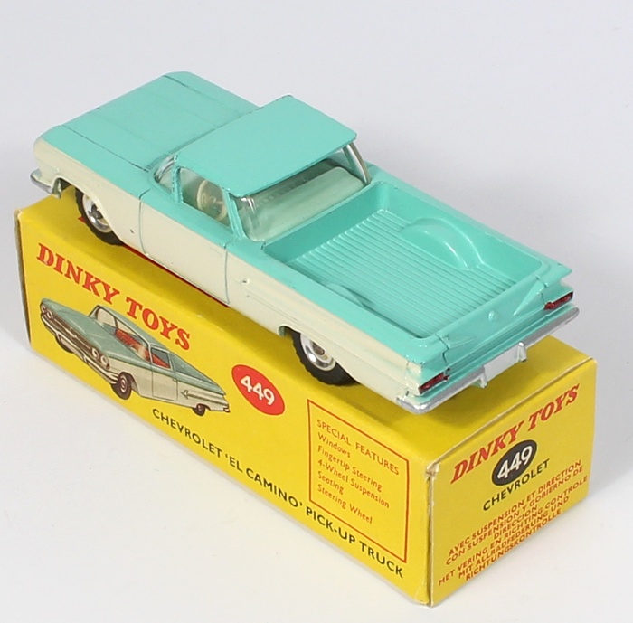 Dinky 449 Chevrolet El Camino Pick-Up Truck. Scarce with PALE BLUE interior. Near mint plus/boxed. From The 25 Year Collection.