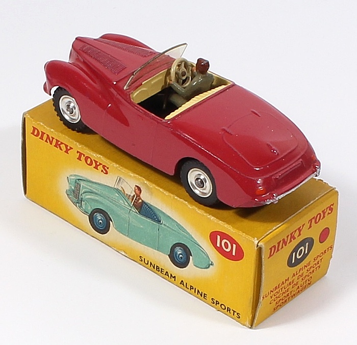 Dinky 101 Sunbeam Alpine Sports. Maroon with SPUN WHEELS. Very rare variation. Near mint/boxed. From The BST Collection.
