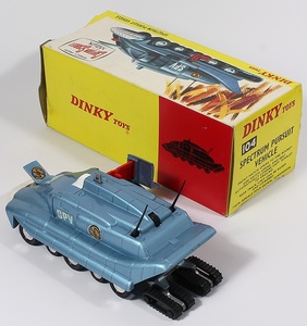 Dinky 104 Spectrum Pursuit Vehicle. Very near mint/boxed. 1st issue in card box with packing sponge, paper, small card ring & firing rocket. Larger packing piece. With Instruction Leaflet. From The M.P. Collection in Switzerland.