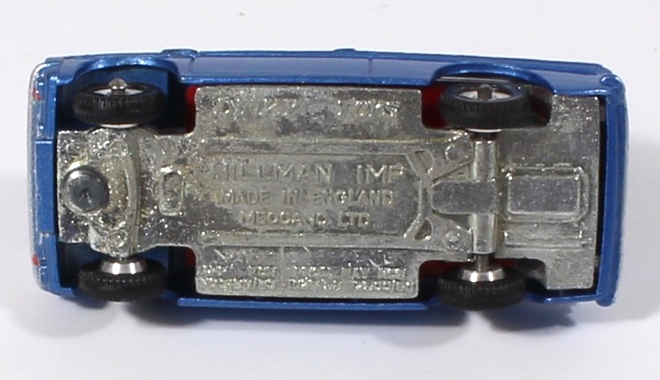 The Hillman Imp model has a vibrant metallic blue finish with a bright red interior, jewelled lights and a silver baseplate (minor tarnishing).