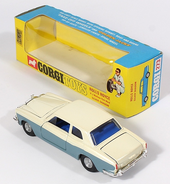 Corgi 273 Rolls Royce Silver Shadow. Pearlescent white & Wedgwood blue. Very near mint/boxed. Fresh box WITH Rolls Royce Sticker. From The M. P. Collection.