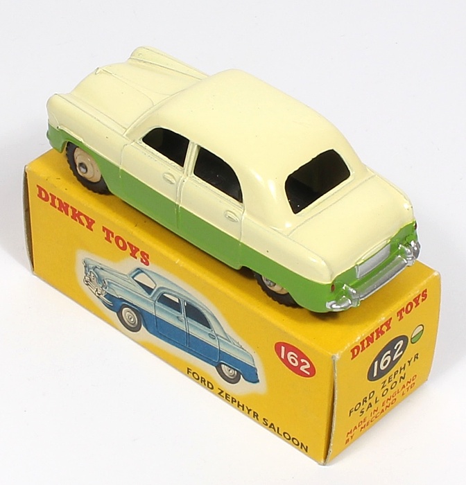 Dinky 162 Ford Zephyr Saloon. Scarce lime green and cream version. Very near mint/boxed. From The HNC Collection.