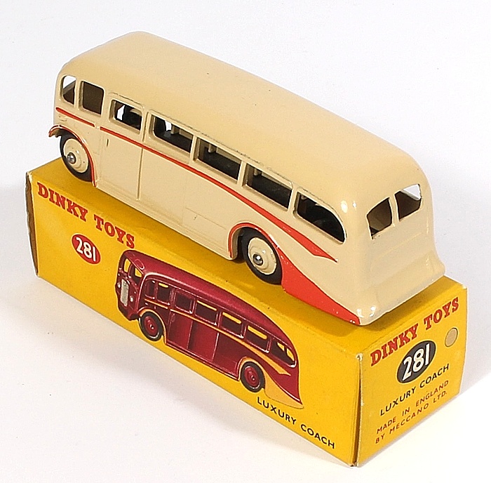 Dinky 281 Luxury Coach. Scarce issue in cream with orange flash. Very near mint/boxed. Fine box! From The Berlin Collection.