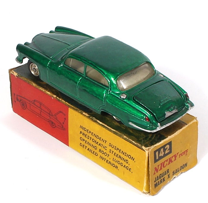 Nicky/Dinky Toys 142 Jaguar Mark X Saloon. Metallic Emerald Green version. Near mint/boxed, with luggage. Scarce. From The Compton Collection.
