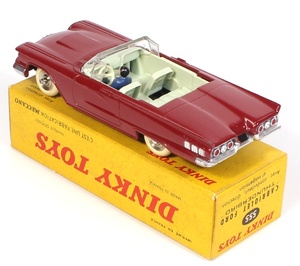 French Dinky 555 Cabriolet Ford Thunderbird. Near mint plus/boxed. Deep red issue, driver in deep blue suit, bright red tie. From The Eric Slager Collection.