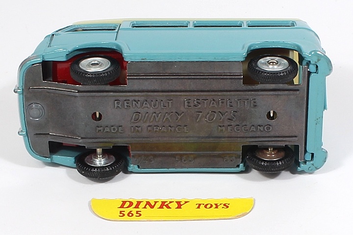 First issued during 1965, this Renault Estafette Campervan is a delight! Finished in sky blue with a cream plastic moulded roof with shining silver trim, bright red interior, jewelled lights. Open the delicate hinged rear doors and peek inside. Detailed cream interior, complete with ‘jazzy’ flowered seating!