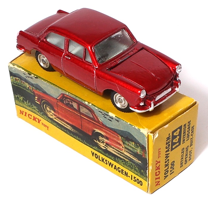 Nicky Toys 144 VW 1500. Metallic red version. Near mint plus/boxed, with luggage. Scarce. From The Compton Collection.