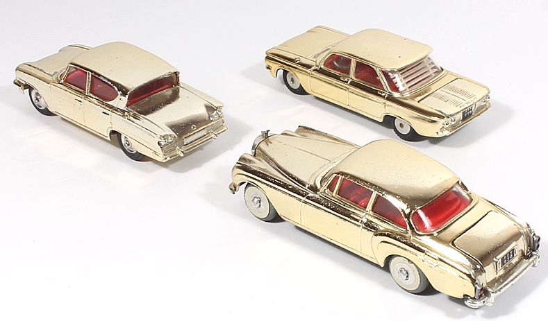 3) 234 Ford Consul. With a couple of areas where the paint has flaked away (at one edge of the opening bonnet and one of the top edges of the side windows). Gold plated base too!