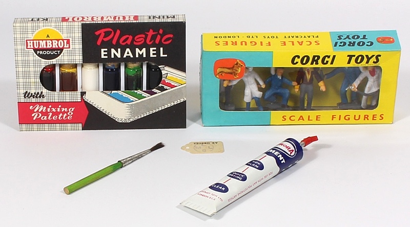 Paint case looks shop-fresh with none of the expected wear to the delicate plastic inner. Original little green paint brush is tucked in neatly at the back of the plastic inner. Glue tube is ‘unsqueezed’!