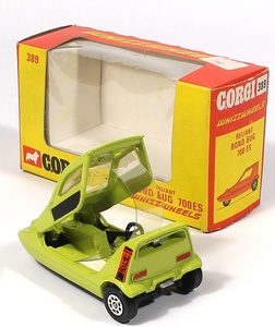 Corgi 389 Reliant Bond Bug 700ES. Very near mint/boxed (with original packing strip). Rare LIME GREEN version. From The West London Collection.