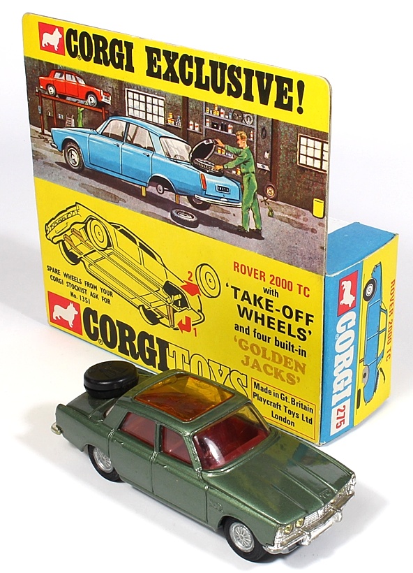 Corgi 275 Rover 2000 TC. Metallic olive green issue. Near mint plus/boxed. Rare with RED INTERIOR. From a lifetime collection in London.