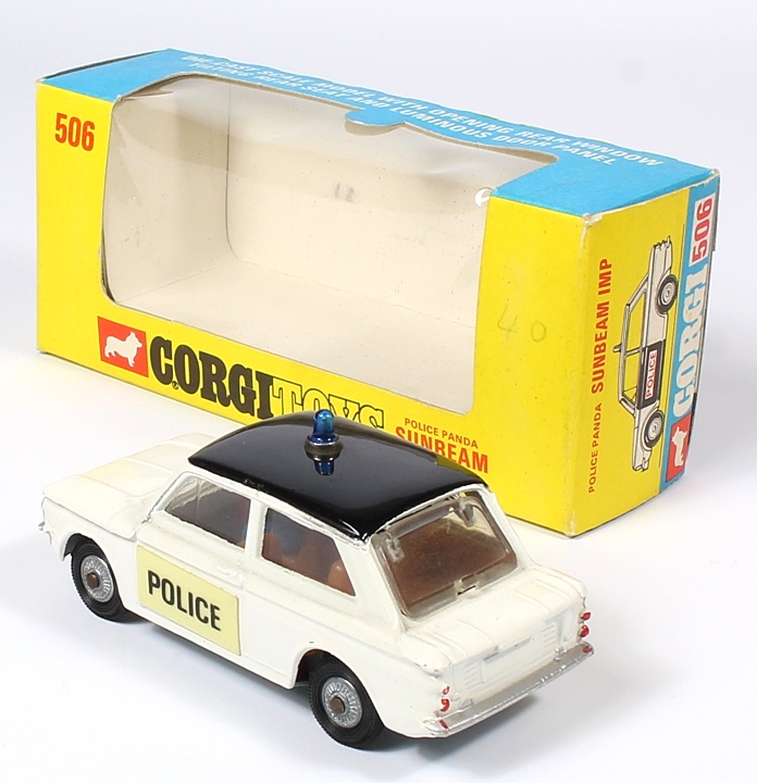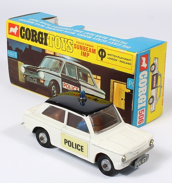 Corgi 506 Police "PANDA" Sunbeam Imp. Near mint plus/boxed, with model specific leaflet. From The West London Collection. Harder find in the WINDOW BOX.