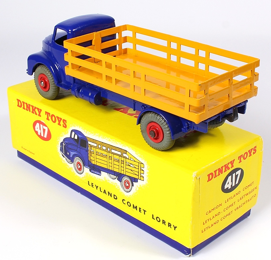 Dinky 417 Leyland Comet Lorry. Very near mint/boxed. Violet blue & deep yellow issue, red Supertoy wheels. Outstanding. From The Reference Collection.