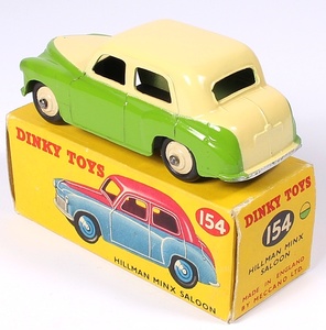 Dinky 154 Hillman Minx Saloon. Scarce two-tone issue in lime green and cream. Very near mint/boxed. Correct two colour spot box. From The Berlin Collection.