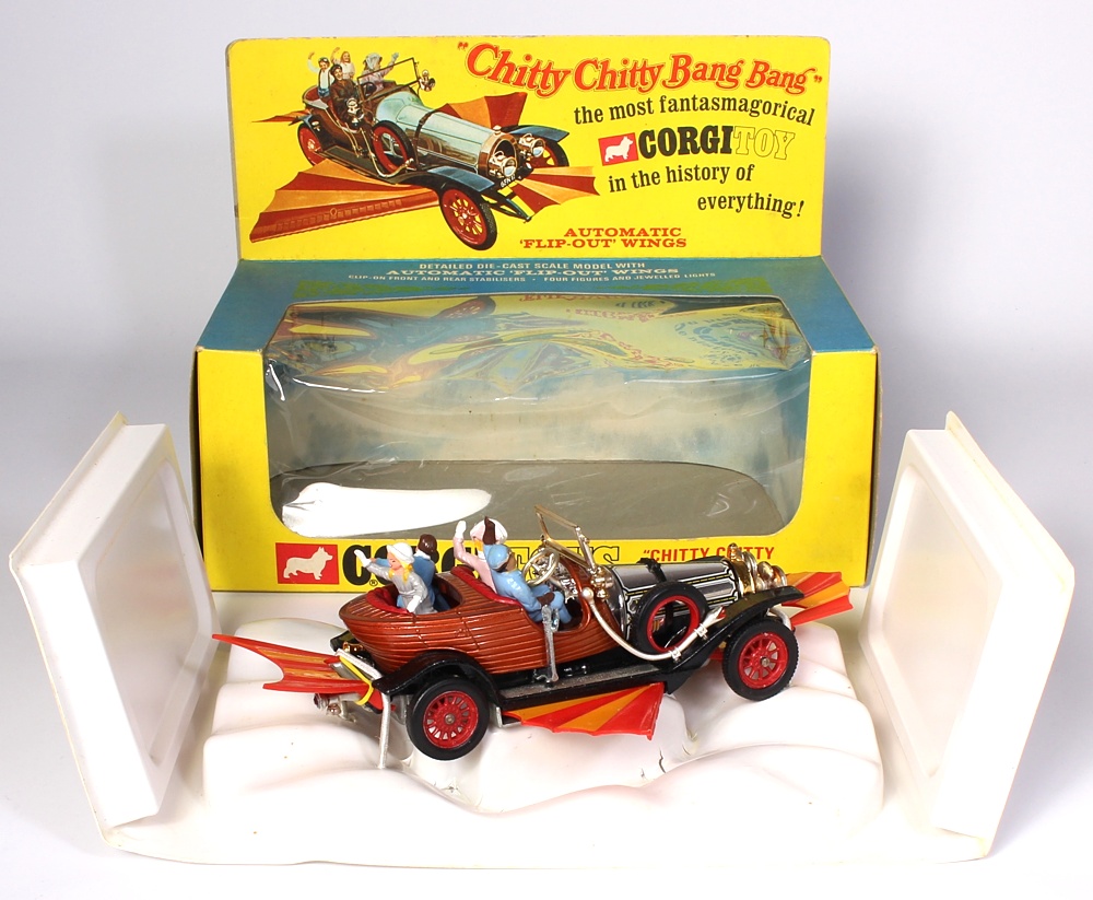 Corgi 266 Chitty Chitty Bang Bang. Near mint plus/boxed. Complete with all four original figures and wrap-around cloud scene! Original and best 1st issue from The MBU Collection.