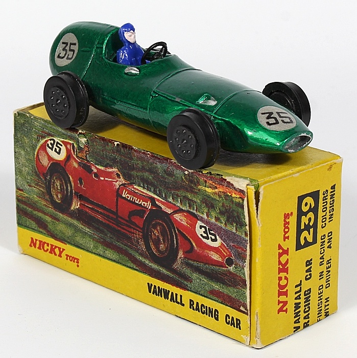 Nicky/Dinky Toys 239 Vanwall Racing Car. Emerald green version. Very near mint/boxed. Scarce. From The Reference Collection.