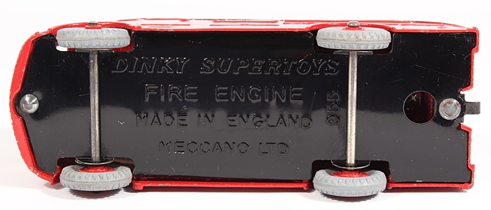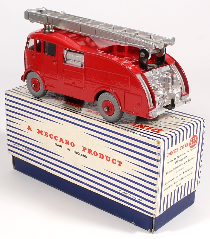 Dinky 555/955 Commer Fire Engine. Near mint plus/boxed. With windows, RED PLASTIC wheels and grey original tyres, gloss base. From The PF Collection.