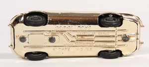 A striking Corgi model issued between 1964-68 with a light gold-plated finish, black interior, intact original windscreen, racing driver, steering wheel. Suspension on detailed spoked wheels.