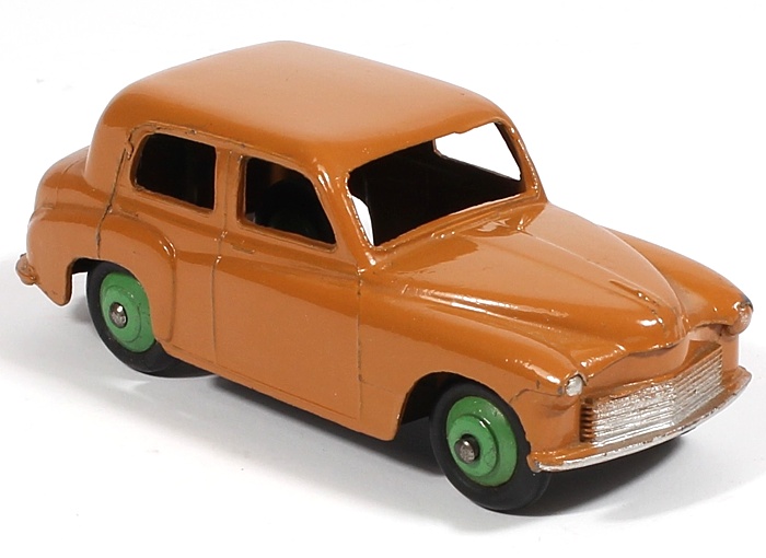 An original early example of this classic Dinky model first issued during 1951. This version in lustrous deep tan finish with green ridged wheels is not an easy find. Early issue, so correct early ‘railed baseplate’ with small lettering. Carefully handled and stored, this model has the occasional small mark only.