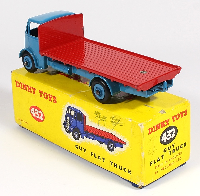 Dinky 432 Guy Flat Truck. Very near mint/boxed. 2nd type. Scarce version in light blue and cherry red. From The Botany Bay Dinky Collection.