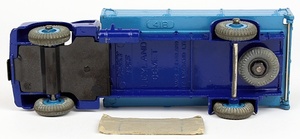 This attractive Dinky commercial truck was issued in several different colour finishes – this particular version has an all original deep blue cab and chassis, mid-blue back with working, intact hinged tailboard, and matching grooved wheels.