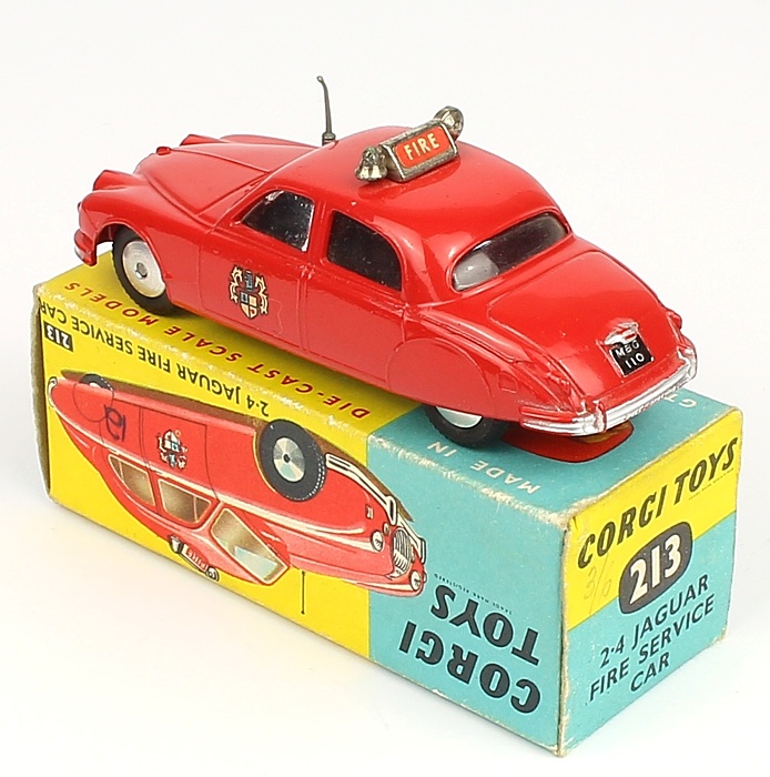 Corgi 213 2.4 Jaguar Fire Service Car. Near mint plus/boxed. From a collection of childhood toys in Cheshire.