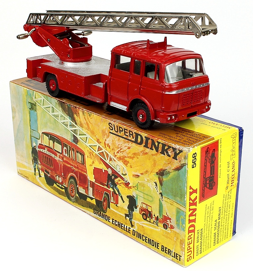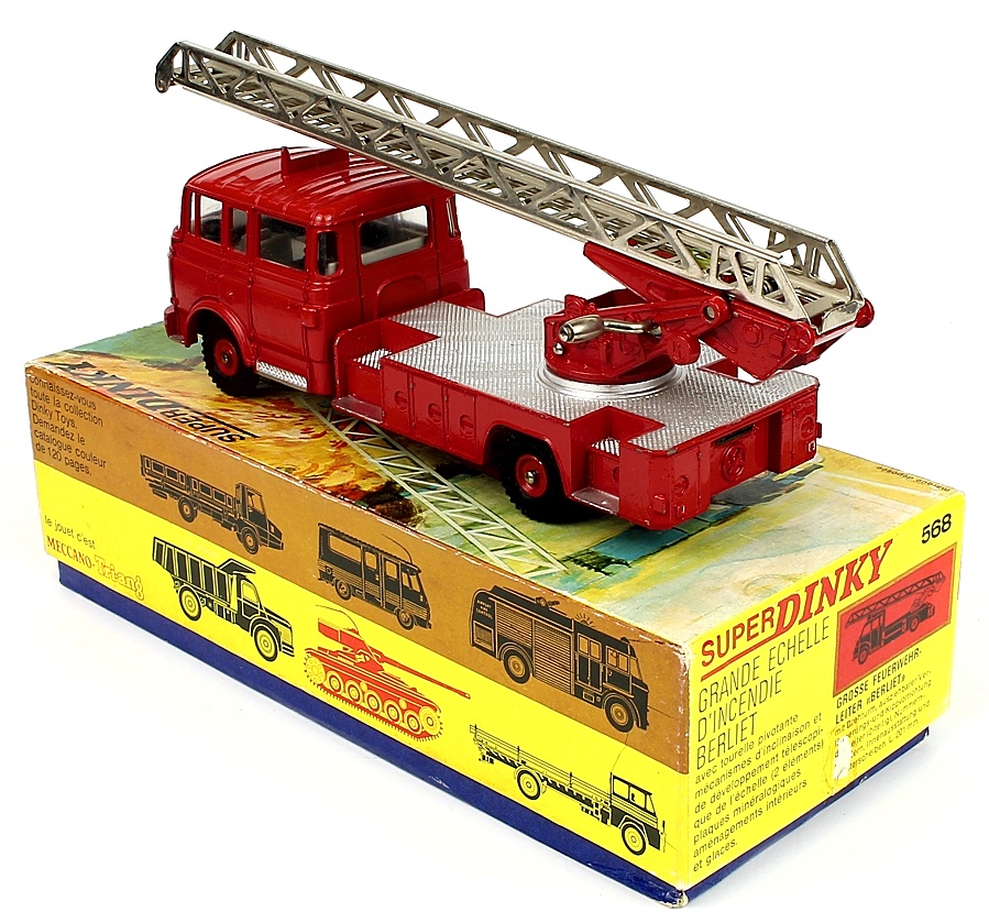 French Dinky 568 Berliet Fire Escape. Near mint plus/boxed, with packing & both Instruction Leaflets. A sought-after model.